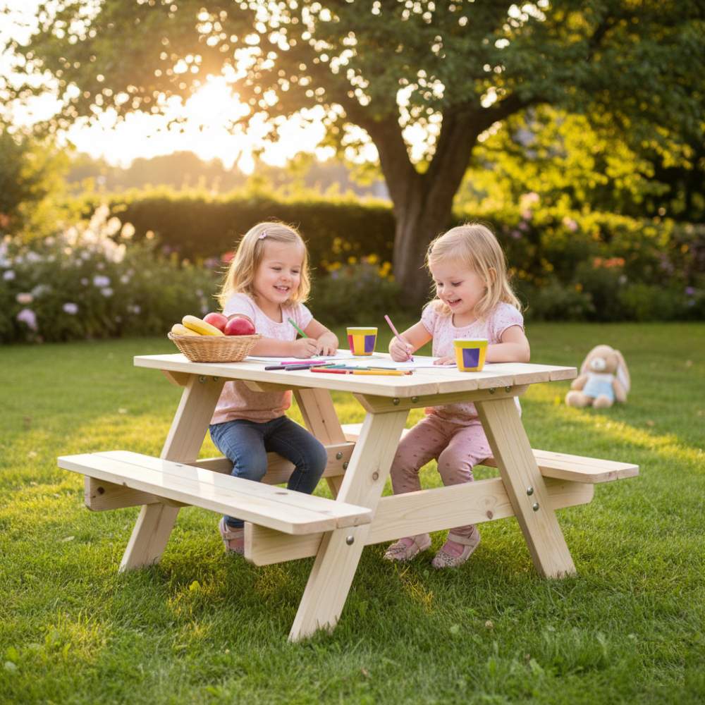 Tavolo Picnic per Bambini in Legno di Pino Nordico: Divertimento e Sicurezza